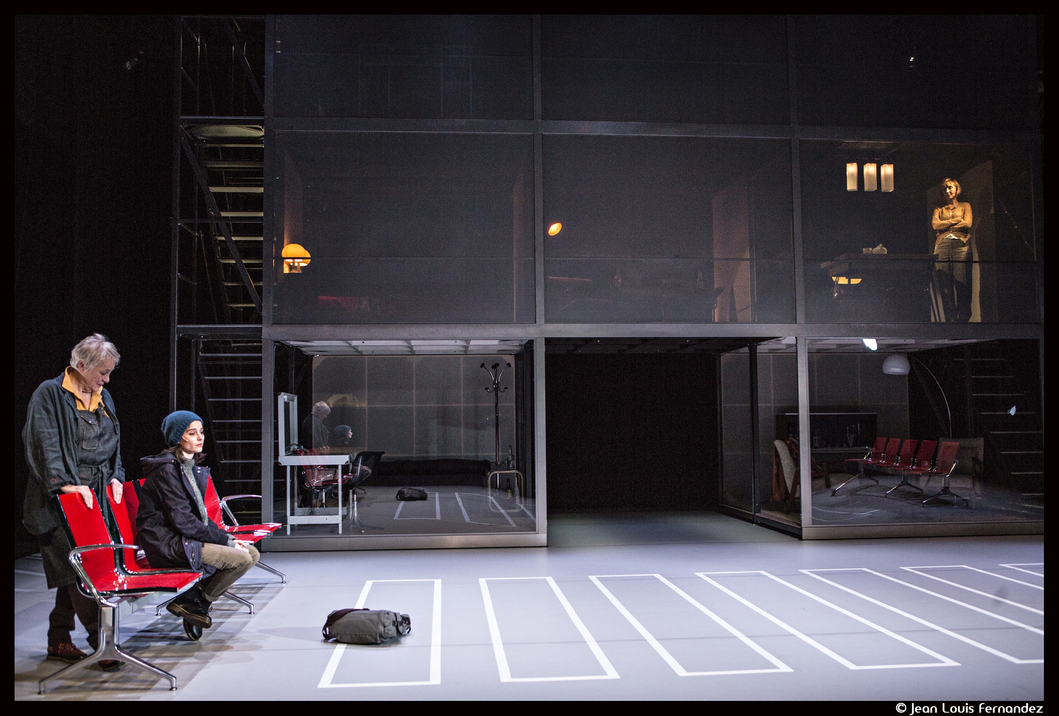 Travaillant en étroite relation avec son auteure, Anne Théron s’empare de ces destins abîmés pour mieux les sublimer, leur apporter une lueur d’espoir, une chance de survie. Jouant des espaces comme Jean Bellorini dans Kroum, des lumières, des champs et contre-champs comme dans une œuvre cinématographique, elle imagine une sorte de building immaculé à neuf cases où l’on voyage d’un pays à l’autre, d’une maison à une chambre d’hôtel, à une loge d’artistes, de la virtualité par vidéo intermposée à la réalité. Entremêlant les histoires, les vies, elle interroge la transmission, la filiation d’un point de vue féminin.