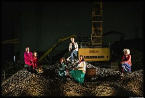 A peine le temps de se rafraîchir, de se sustenter, que des navettes attendent pour conduire une centaine de personnes sur le lieu tenu secret de la dernière création de la jeune metteuse en scène, Mathilde Delahaye. Changement d’atmosphère, après un trajet d’une quinzaine de minutes, c’est dans une sorte de friche industrielle en bordure du Rhône que s’arrête le chemin et commence une aventure singulière, fascinante. Entre tas de gravats, silos de béton et cabanes de chantier taguées, une étrangeté, un piano abandonné là, accueille le petit groupe d’arrivants égrenant des notes nostalgiques, ensorcelantes. Alors qu’un léger mistral souffle, la magie opère. La plongée âpre, profonde dans les pensées satiriques, corrosives d’Elfriede Jelinek se fait tout naturellement. Avec un humour froid qui force le trait sur le machisme de nos sociétés occidentales, la dramaturge autrichienne dépeint, non sans cynisme, avec beaucoup d’intelligence les rapports entre hommes et femmes. Les uns sont des bêtes musculeuses ne pensant qu’à l’apparence, les autres des vampires, des individus incomplets.